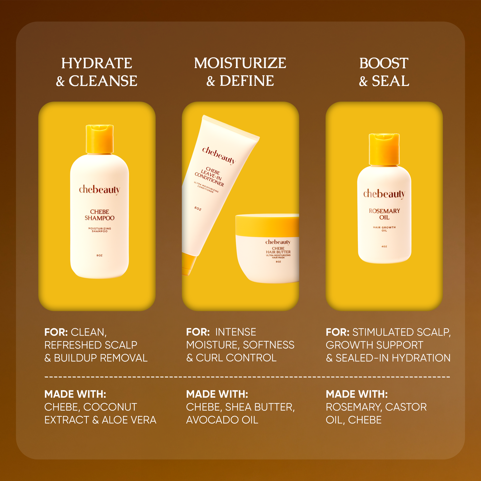 Nourish and strengthen your hair with the power of Chebe and Rosemary.