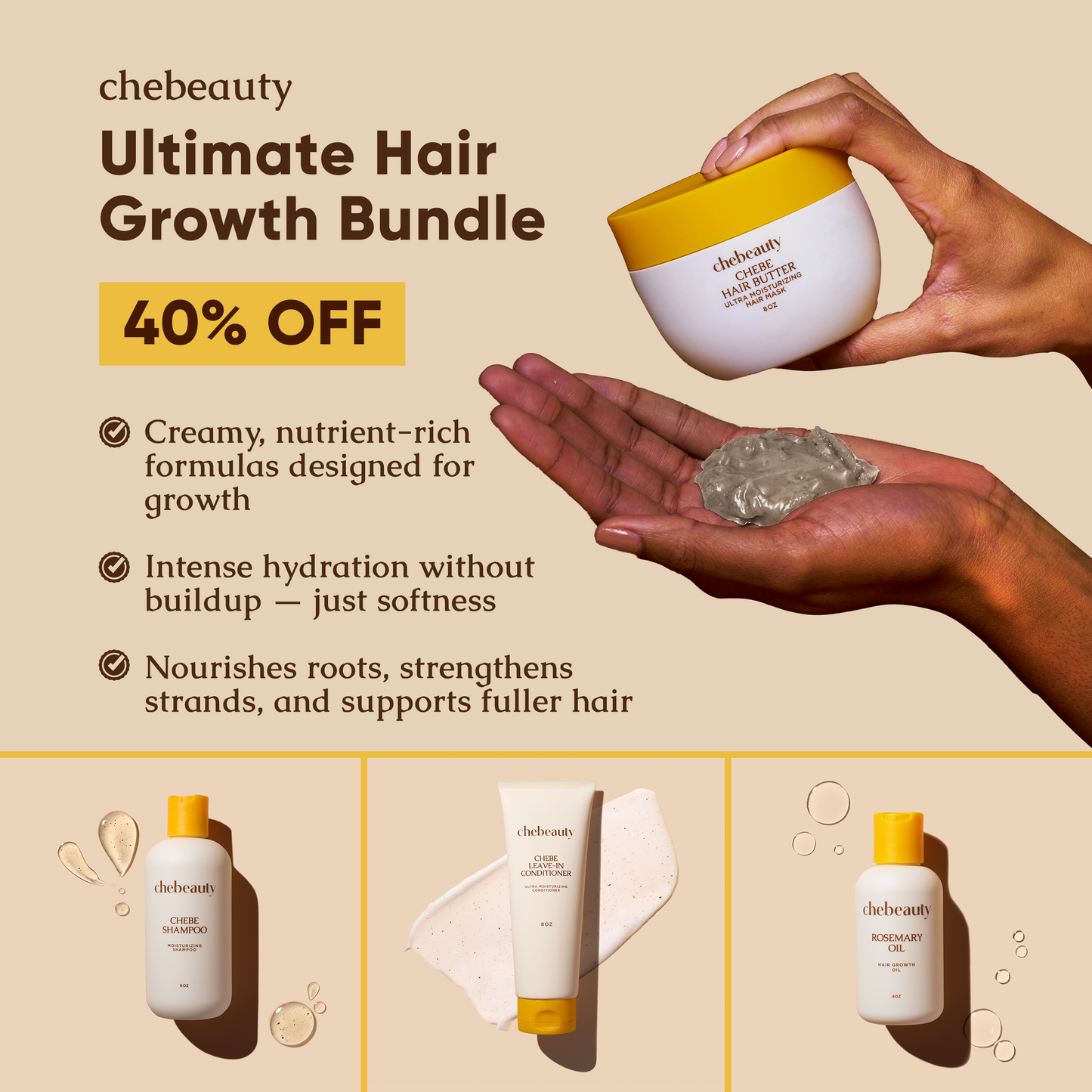 Restore and protect your hair with our lightweight Chebe leave-in conditioner.
